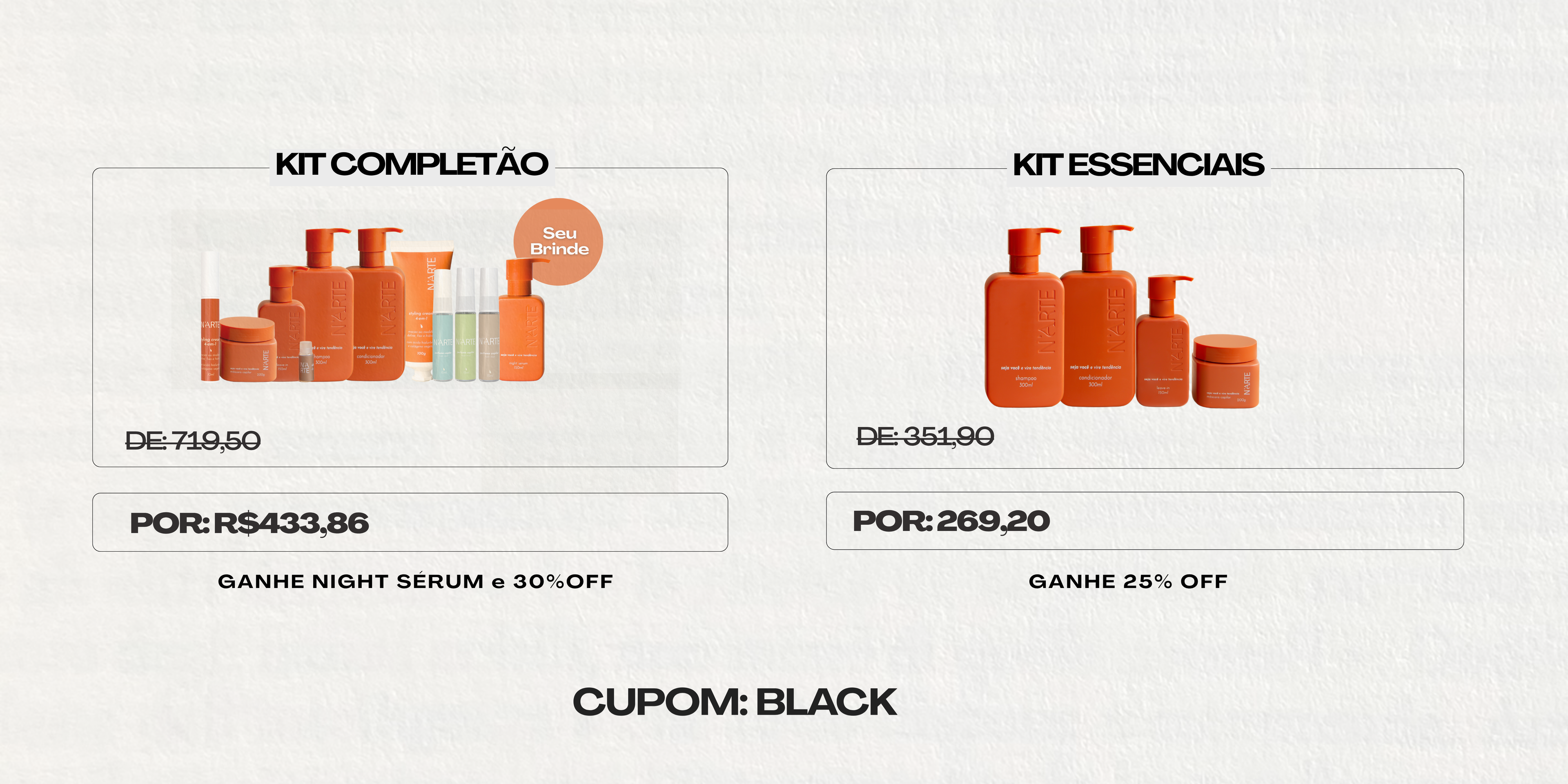 Cada ingrediente é escolhido com cuidado para refletir a sua individualidade. Afinal, a verdadeira beleza surge quando o cuidado se adapta ao seu estilo, transformando cada fórmula N'Arte em uma experiência exclusiva.