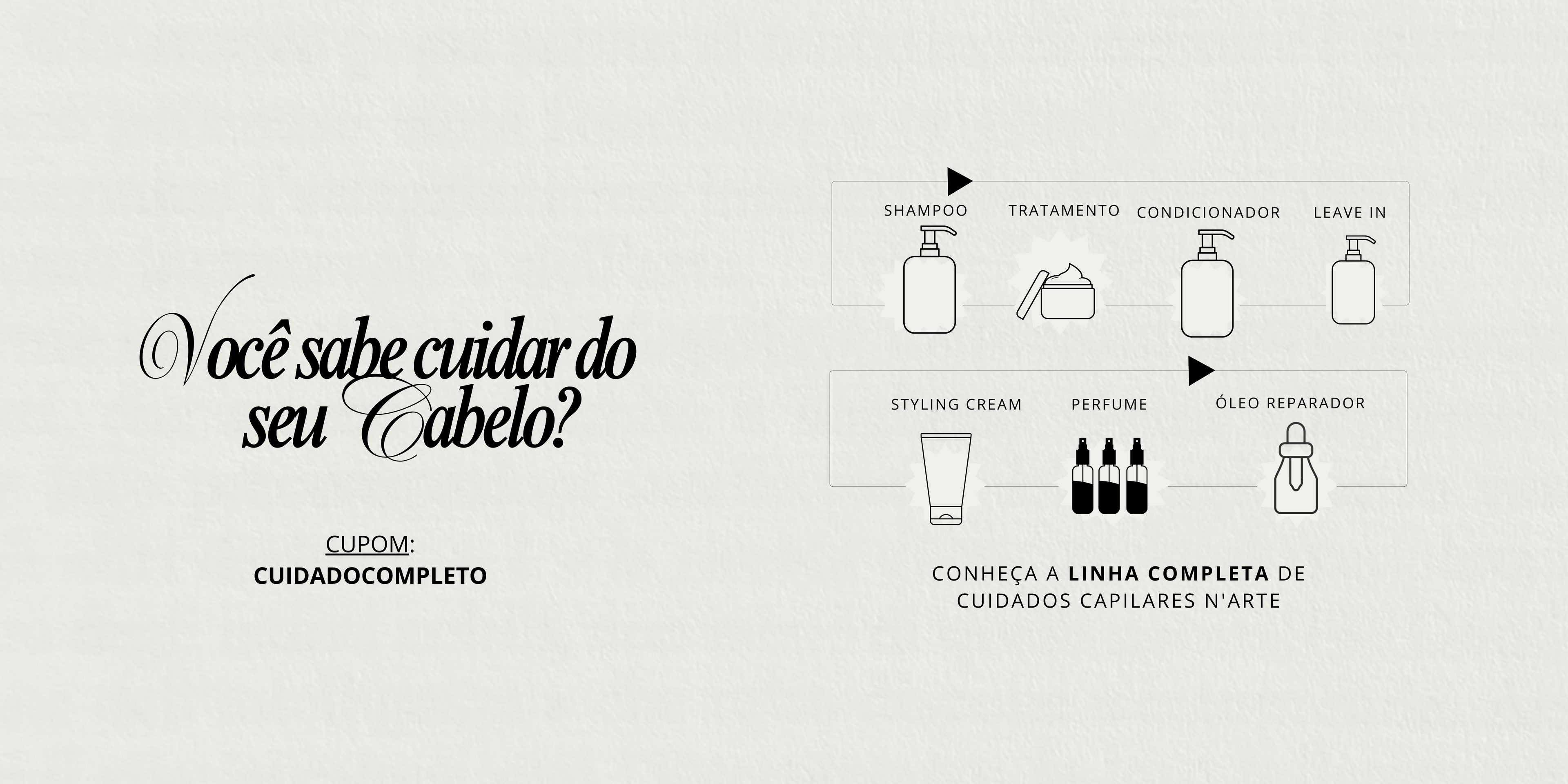 Cada ingrediente é escolhido com cuidado para refletir a sua individualidade. Afinal, a verdadeira beleza surge quando o cuidado se adapta ao seu estilo, transformando cada fórmula N'Arte em uma experiência exclusiva.